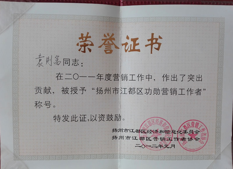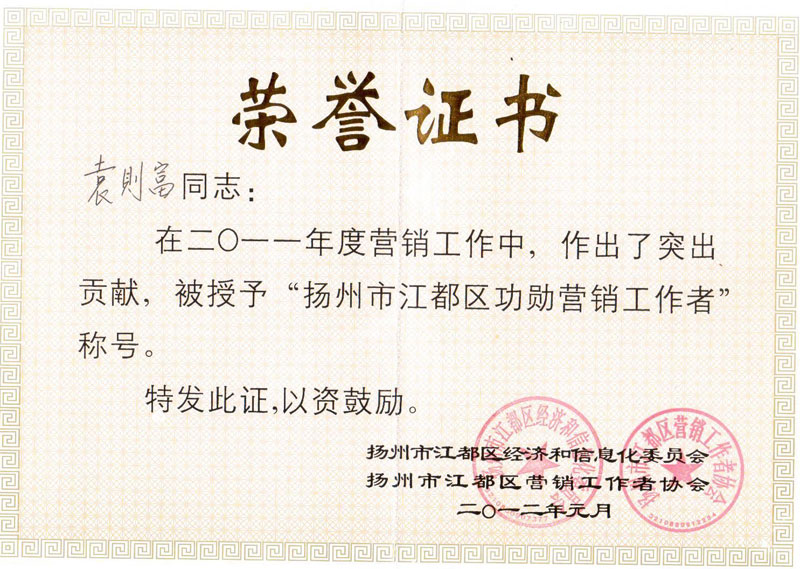榮獲“揚州市明星企業”和“重合同、守信用”企業稱號